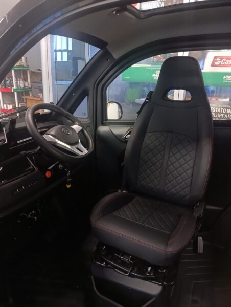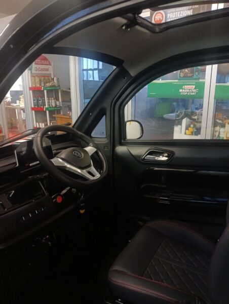 Sulla macchina senza patente Freedom EVO potrai salire e scendere senza alcun sforzo, grazie alle sue porte di ampia apertura. Una volta entrati all’interno, l’abitacolo si presenta come moderno e super accessoriato oltre ad avere un vano posteriore – utilizzato non come posto ma come portabagagli – in cui è possibile caricare tutto ciò che si desidera.